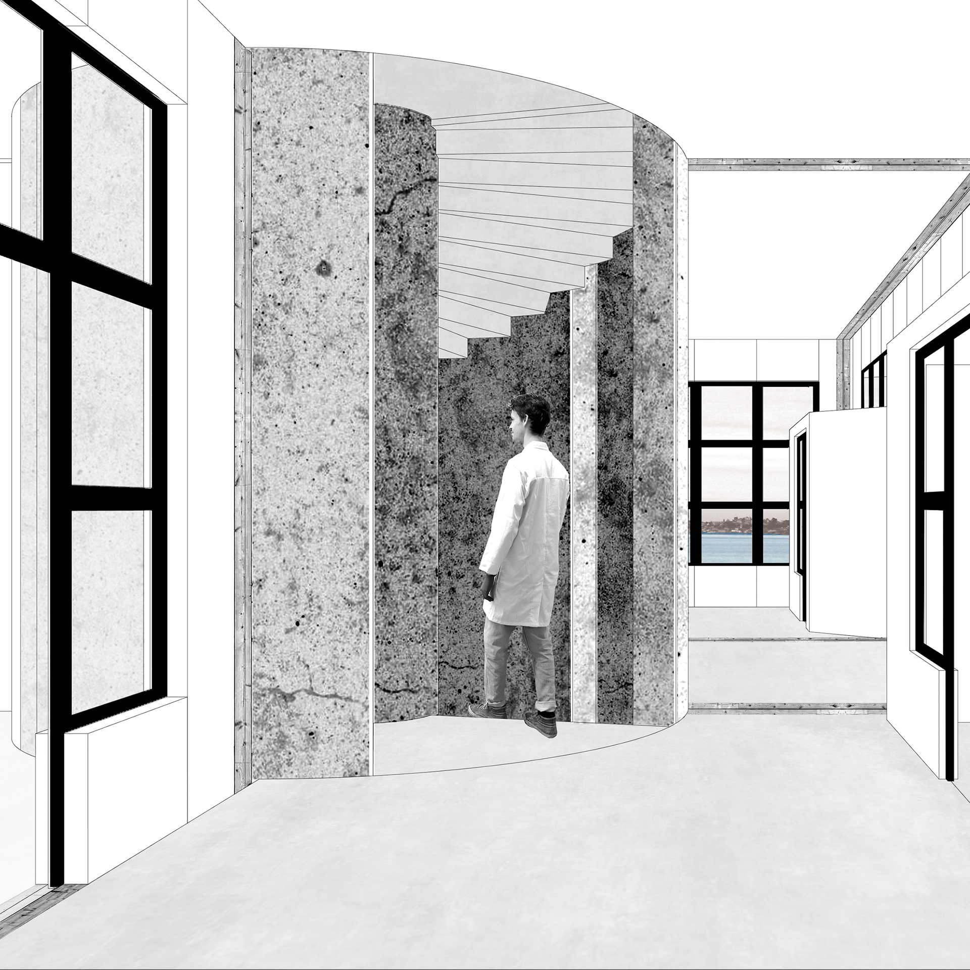 To accommodate the rising sea, the proposed Center features two main aspects: an adaptive modular building system and a land formation strategy that accumulates slowly over time. The site is returned to a generative state through the reestablishment a gantry crane that was once present during its time as a coal depot in the early 1900’s. The gantry crane acts as the site’s organizer and enabler, allowing for periodic reconfiguration and raising of the modular building components. As an institution engaged in research for promoting and preserving resilient ecosystems, we believe the Romberg Center can act as a model for sea level rise strategies and sufficient, carbon neutral facilities and operations. As much of the world’s urban waterfronts are industrialized, the new Romberg Center sets a precedent on how to re-purpose an industrial infrastructure to generate healthy ecosystems in lieu of pollution.